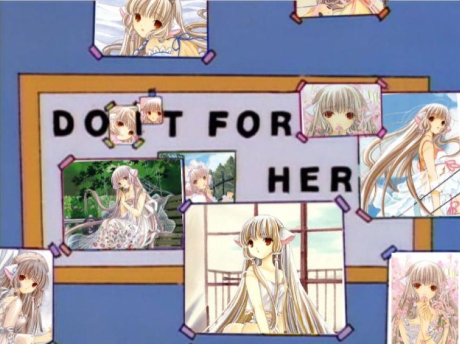 In the story proper, Chii is something else entirely. The fleetingness inherent to both to the aesthetic portrayed by the cover image and aesthetic personas in general is tied down and codified into a distinct character. Not the most unique one, mind; at the start, her personality is basically being innocent to the point of stupidity. I think some people would call it naivety, but I’ll be a little meaner since the point is that she grows from that to being a fully-realized, or at least realizable, love interest for Hideki. She goes from a human-shaped shell to project affections onto, a mirror to the beholder, to a person dedicated both to proving that she can love and to loving beyond the need to prove she can. And despite that change in her personality, Chii never feels any need to surrender the ethereal, angelic aesthetic persona we were introduced to. She still wears cute, well designed outfits, and her hair long, because that’s what CLAMP do.